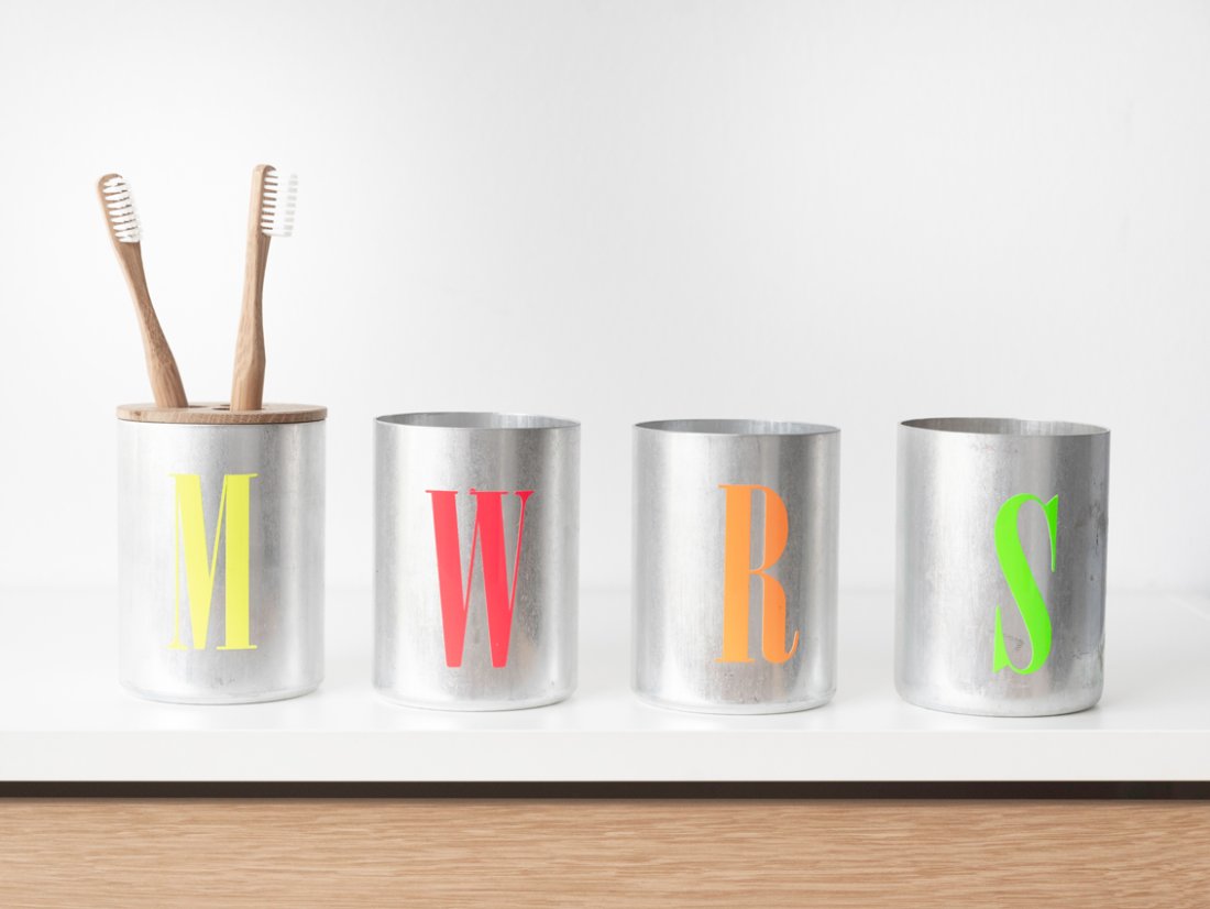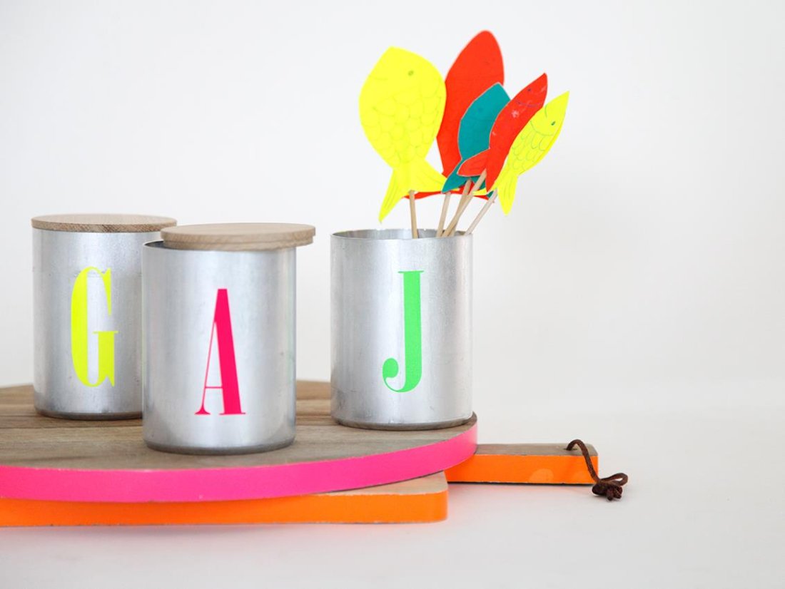 Entdecke die handgefertigten silbernen Dosen, die mit leuchtenden NEON-Buchstaben in den Farben Neon-Orange, Neon-Pink, Neon-Grün und Neon-Gelb personalisiert werden. Ein einzigartiges Design, das Kreativität und Nachhaltigkeit auf innovative Weise vereint.