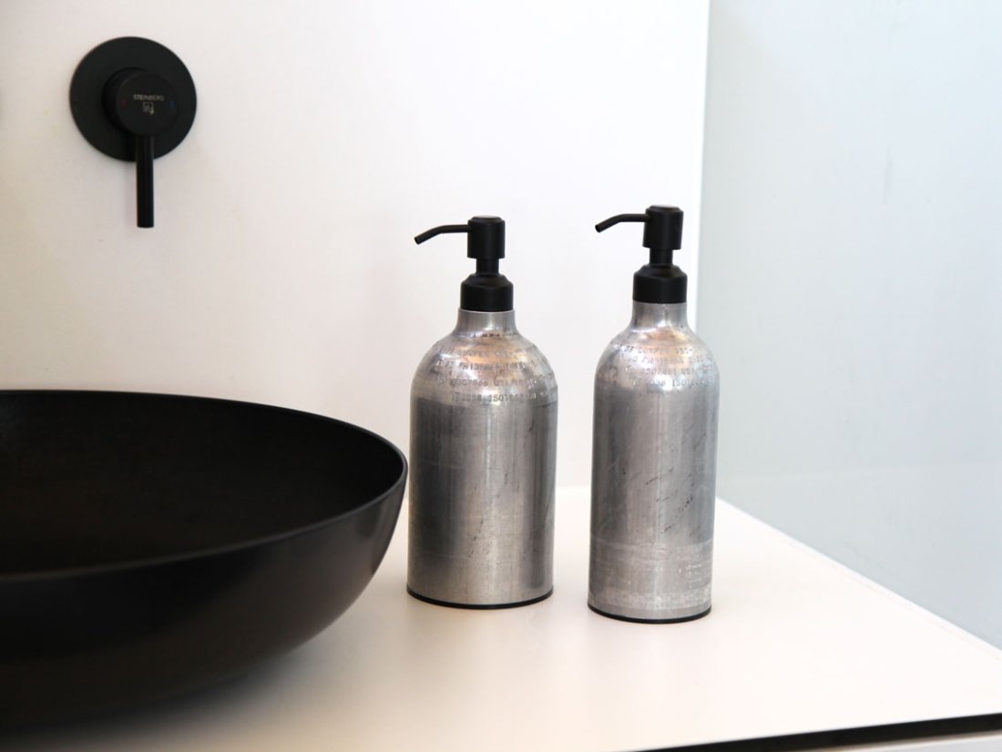 Der innovative Spülmittel-Spender FIRE aus recycelten Gasflaschen bringt im trendigen Design Stil und Funktionalität in jede Küche. Der dekorative Spender in 9 schönen Farben kann individuell mit gefüllt werden. Durch einfaches Pumpen der Flasche wird die gewünschte Menge Spülmittel bequem dosiert. Auch im Badezimmer macht der Spender eine gute Figur, denn auch Flüssigseife und Duschgel lassen sich mit dem cleveren Spender kinderleicht dosieren. Der hochwertige Spender für Spülmittel, Seife, Duschgel und Lotion wird aus recycelten Gasflaschen in Bayern handgefertigt. Er hält die gewünschte Flüssigkeit stets griffbereit in Küche, Bad und Gäste-WC.